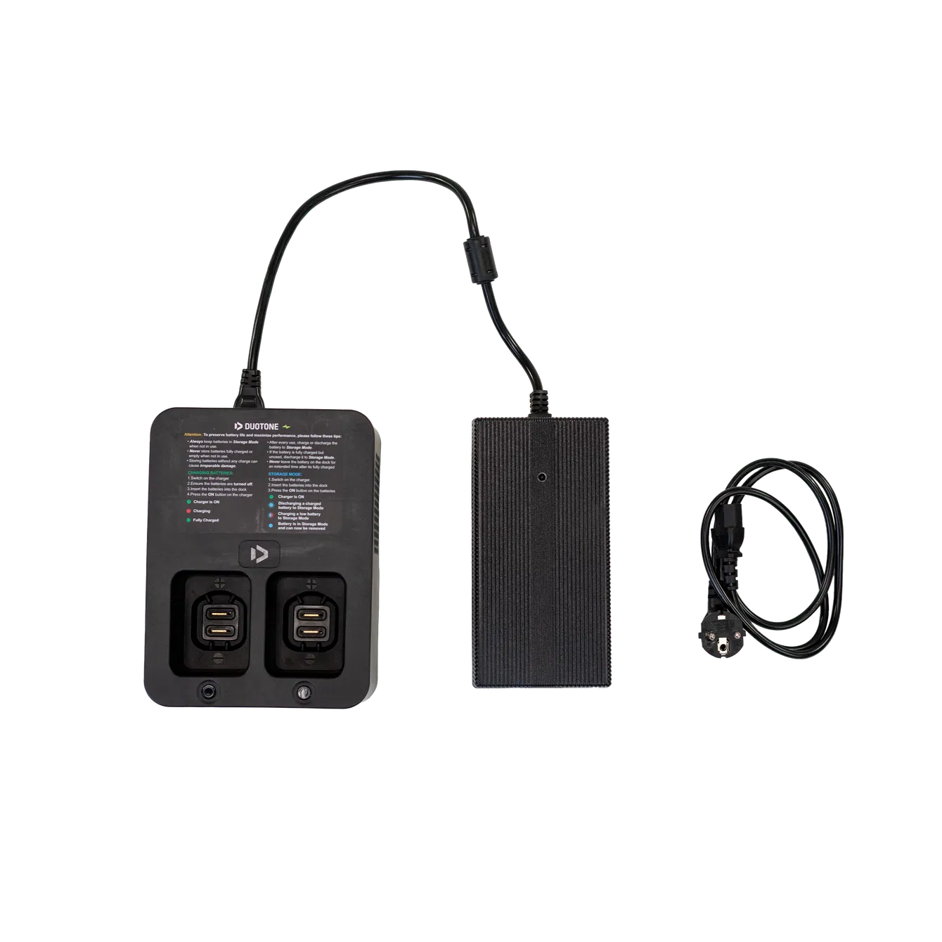 The Foil Assist is powered by two compact batteries housed in a waterproof box mounted on a lightweight eHarness (approx. 3.76 kg). This keeps your board free from extra weight and drag. With the batteries placed on your hips, the natural, fluid feel of foiling is preserved while still giving you full freedom of movement. The eHarness is buoyant and easy to remove. A cable runs neatly along the shorter board leash and connects the batteries to the eMast. The receiver integrated into the battery box ensures a stable and reliable connection between the remote and the motor throughout your entire session.