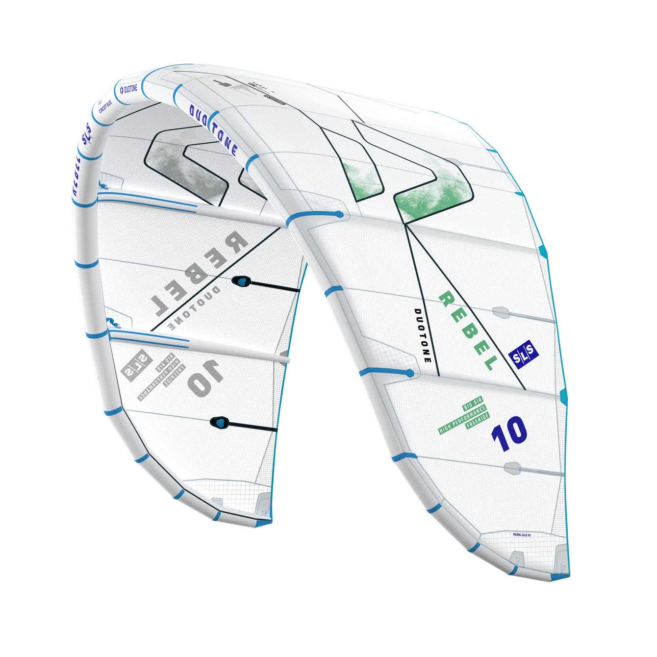 The Rebel SLS Concept Blue is the more sustainable version of the RebelSLS. The Rebel SLS Concept Blue showcase a strong commitment to sustainability in kitesurfing, offering the exact same performance. Made with undyed fabric, they reduce water and energy use during production while minimizing harmful chemicals, ensuring high quality and performance. All plastic components are crafted from recycled materials, promoting a circular economy and reducing plastic waste. Additionally, the kites feature biobased bladders made from renewable resources, further enhancing their eco-friendliness and reducing reliance on fossil fuels.