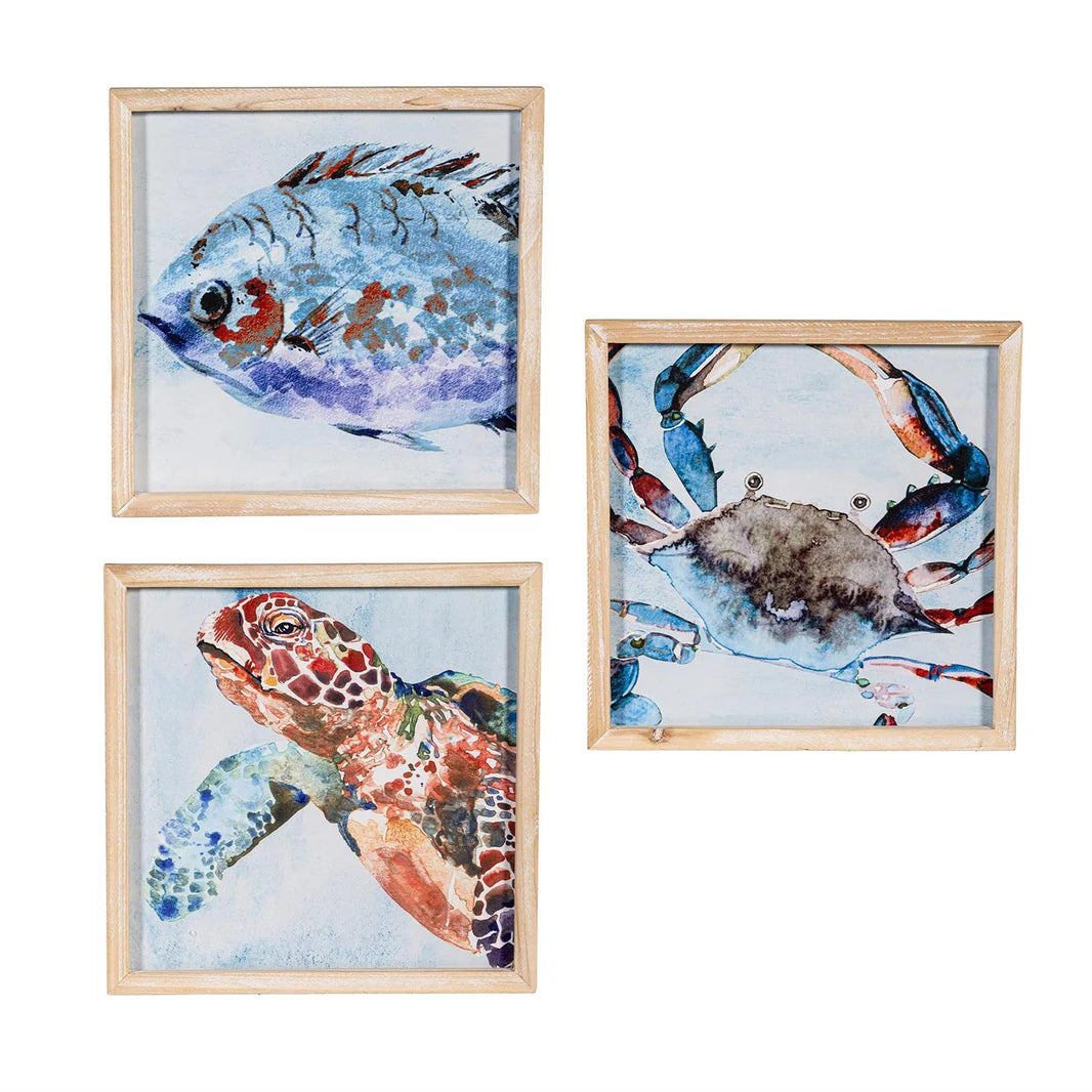 Blue Coastal, Sea Creature Wooden Framed Wall Decor
