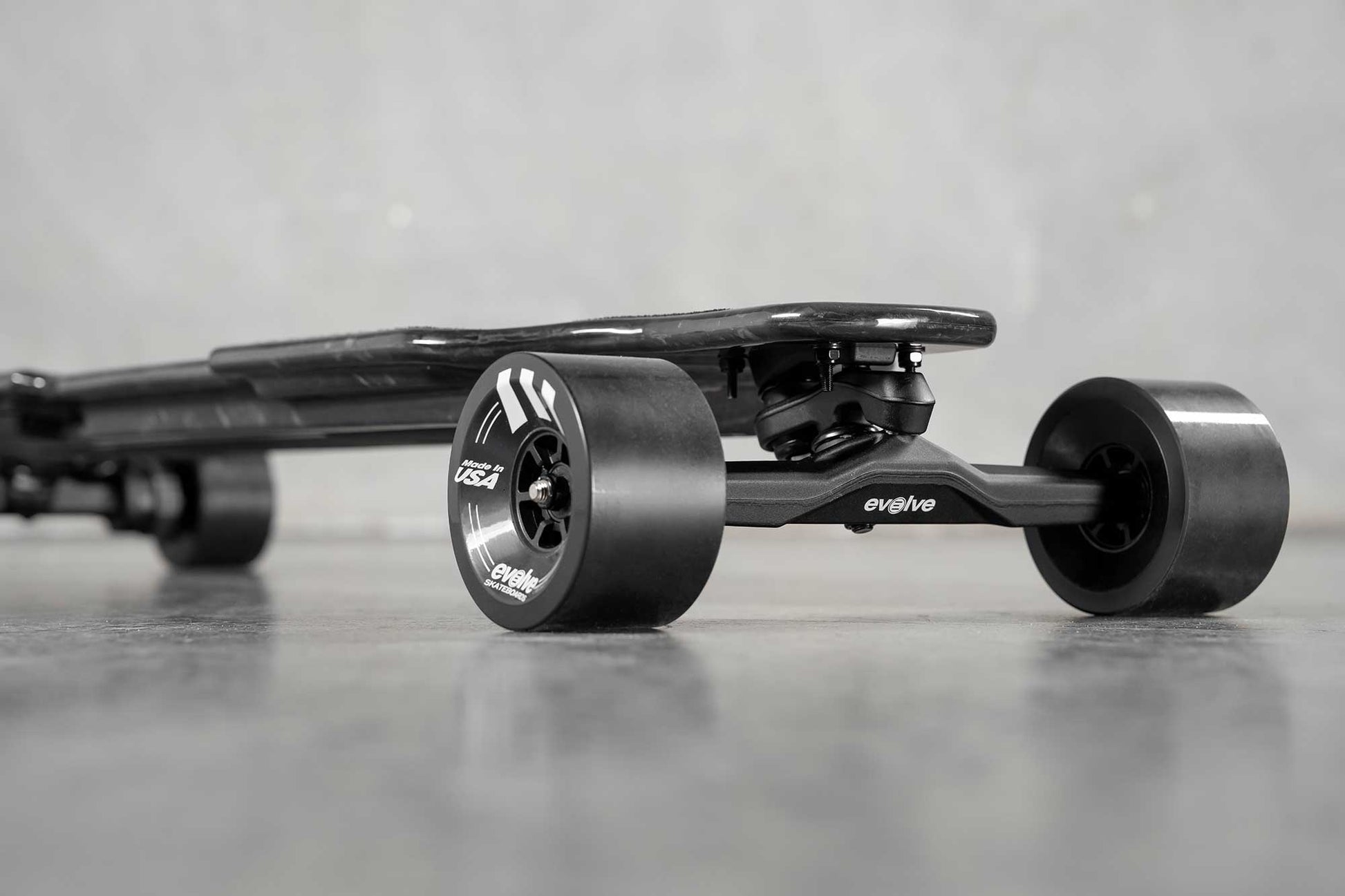 Equipped with Evolve's Super Carve 2 Trucks, this board offers enhanced stability and precise maneuverability, making every turn a thrill-seeking adventure. The Samsung 50S cell battery, featuring a 180A max discharge, ensures extended ride times and robust performance, setting a new standard in the e-mobility industry. Coupled with the eFOC 2.0 Motor Controller and ergonomic Phaze remote, riders can enjoy seamless control and advanced connectivity via Bluetooth, while the Evolve App provides real-time ride data.