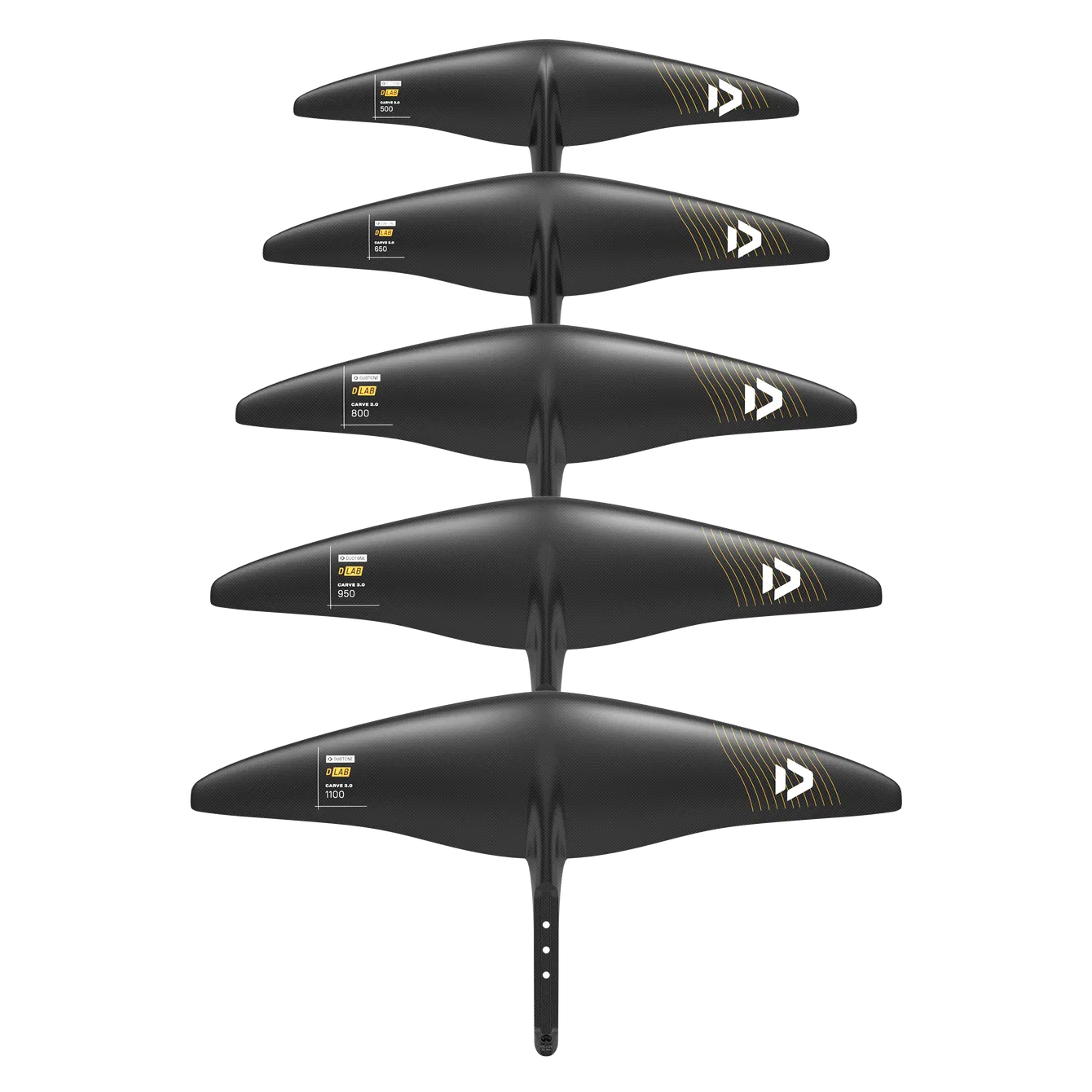 Compatible with all D/LAB tail options and all our masts with 3BS connection, the Carve 3.0 D/LAB offers versatility for various riding styles. Available in five sizes ranging from 500, 650, 800, 950 to 1100, each wing is perfectly positioned for its size and target use. This wide range ensures that whether you're a lightweight rider looking for agility or a power rider seeking stability, there's a Carve 3.0 D/LAB to match your needs.
