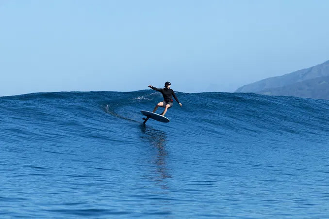 The motor pod is fully integrated into the mast and positioned slightly behind the leading edge, 17 cm below the top plate, to minimize drag even during touchdowns. It features a two-blade folding propeller that reduces drag for effortless glide on the wave. Thanks to the integrated gear system, the propeller unfolds instantly, providing a smooth transition as you kick out of the wave and power back out.