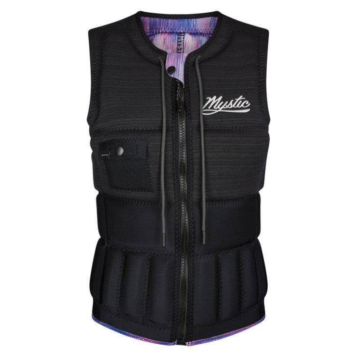 In the range of premium features and comfort, you can find the Diva impact vest with a whole lot of options. The outside of the vest is made from Knitflex+, the inside features Clash foam to protect your body, and added Clash foam on the spine to give it some extra protection. All of the features add up to a vest that looks great on the water, comfort for the gals up top, and the flexibility and protection you've been looking for in a ladies comp vest.