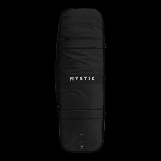 Meet the Saga – this heavy-duty board bag offers superior protection and padding, ensuring your gear stays in top condition during travel. Made from water-repellent fabric, it features a custom Mystic wheel case for smooth, effortless transport. The bag includes a compact elastic shoulder strap, multiple air vent ventilations, and convenient outside pockets for smaller items. Compression straps and a Link System make it easy to attach to other bags, while the compact design allows it to be rolled up for easy storage. The biggest size fits 1 board, 3 kites, and all the essential gear for your trip.