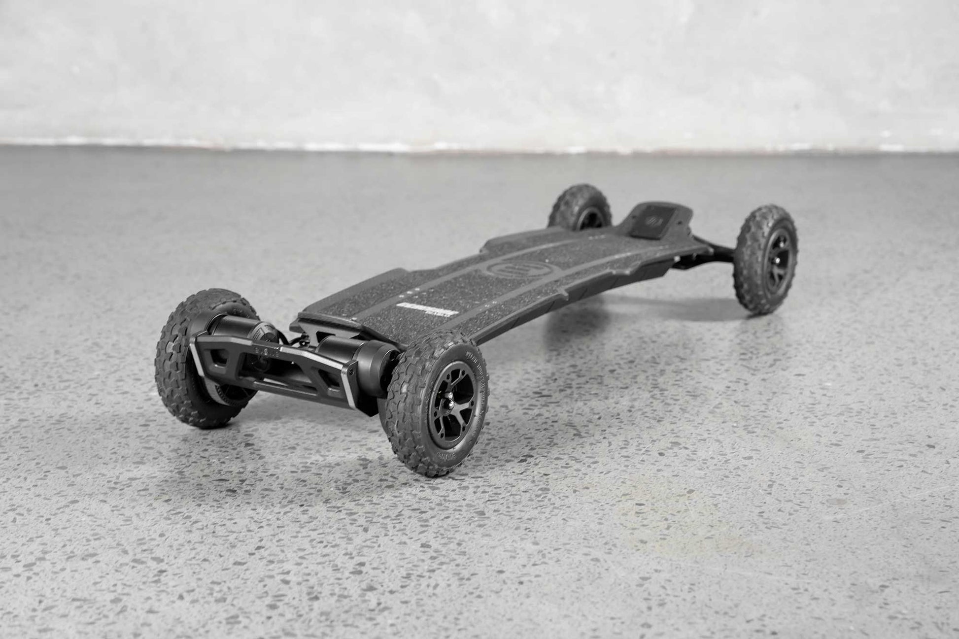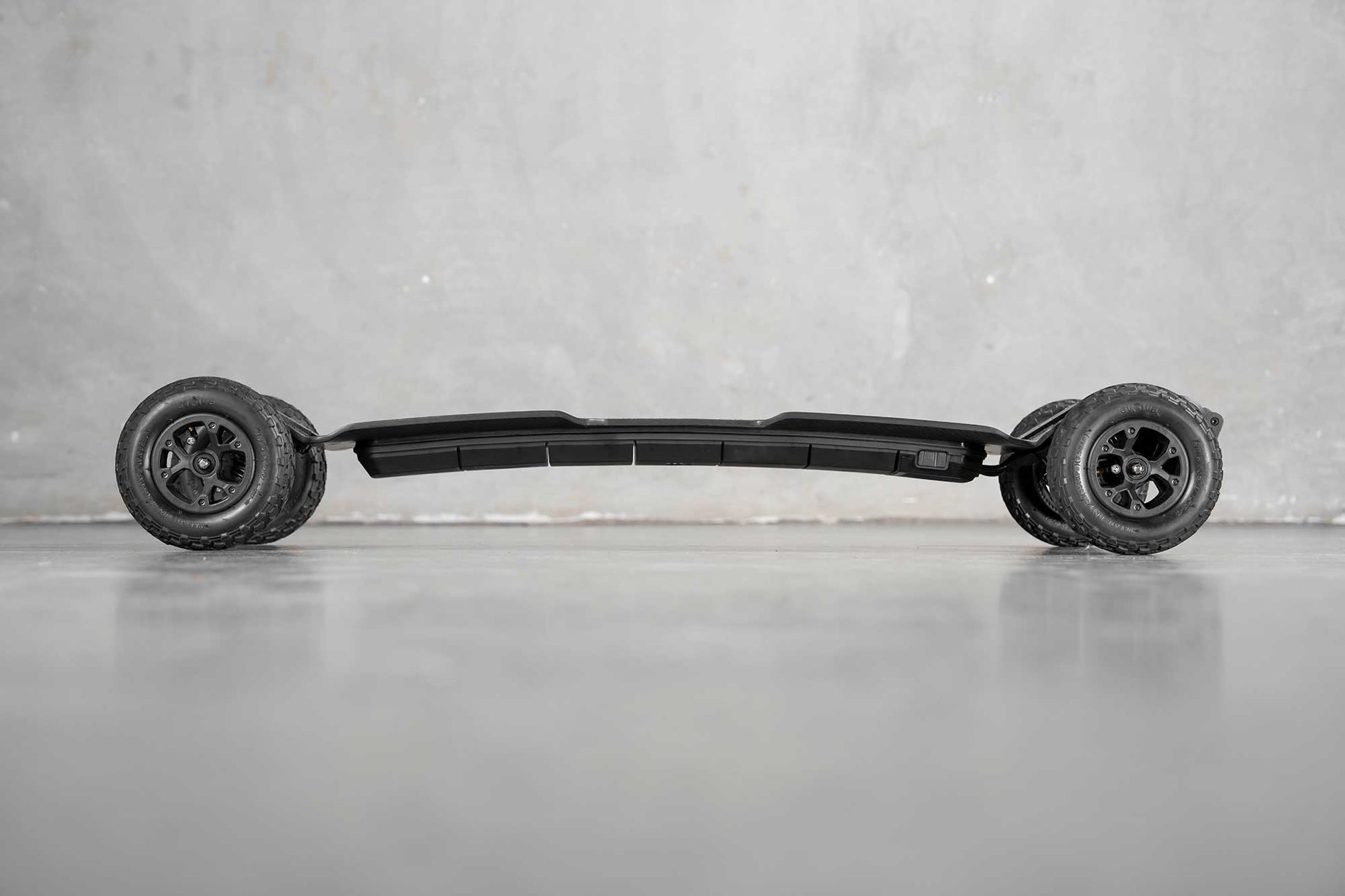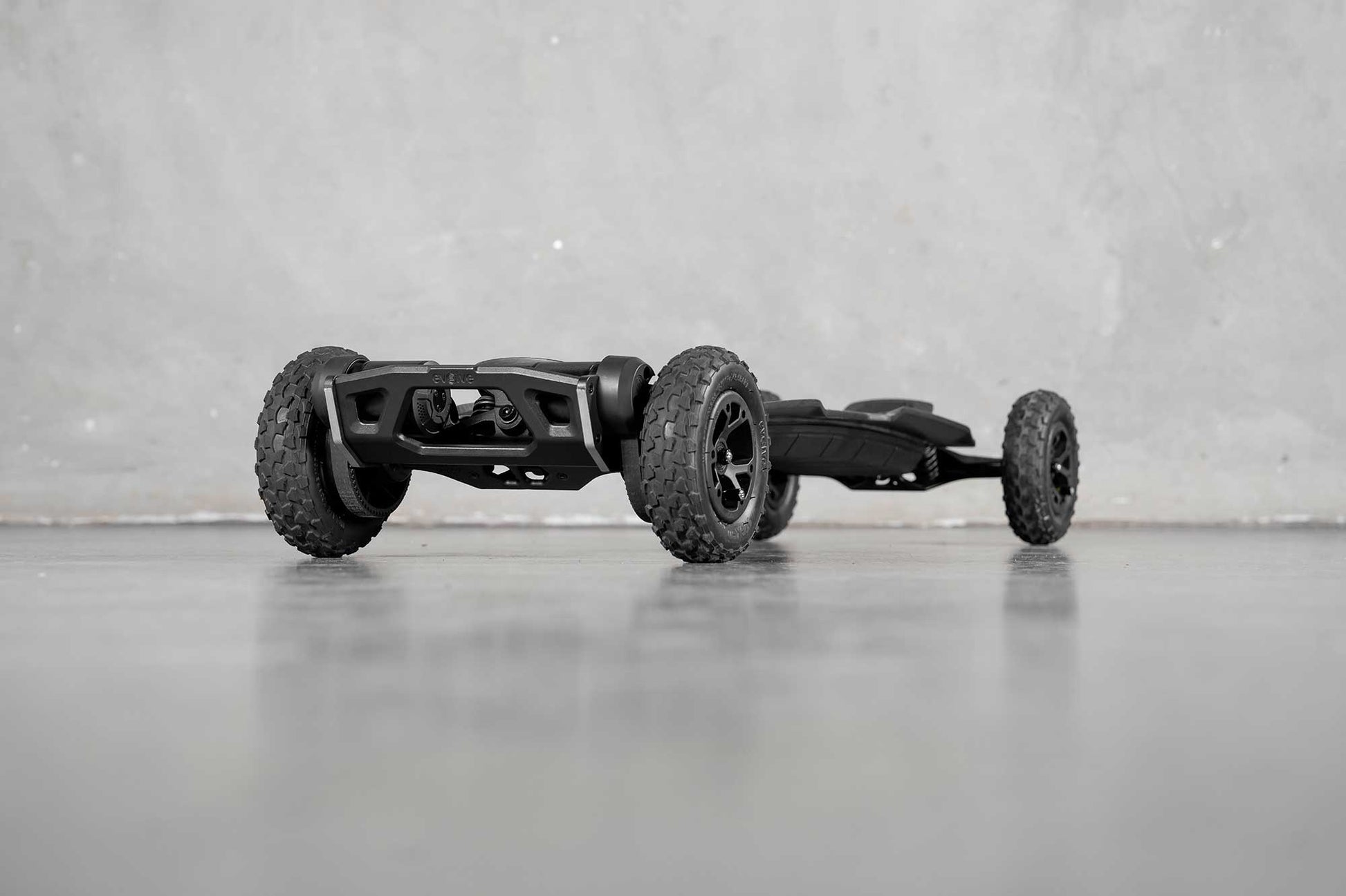 The Renegade Diablo's deck, made from solid carbon fibre, showcases Evolve's innovative design, combining robust strength with perfect flexibility for extreme riders. Equipped with new suspension trucks called “Renegade Forged,” these trucks are designed and built for maximum strength. Built-in binding hole inserts and Evolve Bindings (sold separately) transform this board into an off-road beast, ready to conquer new limits.