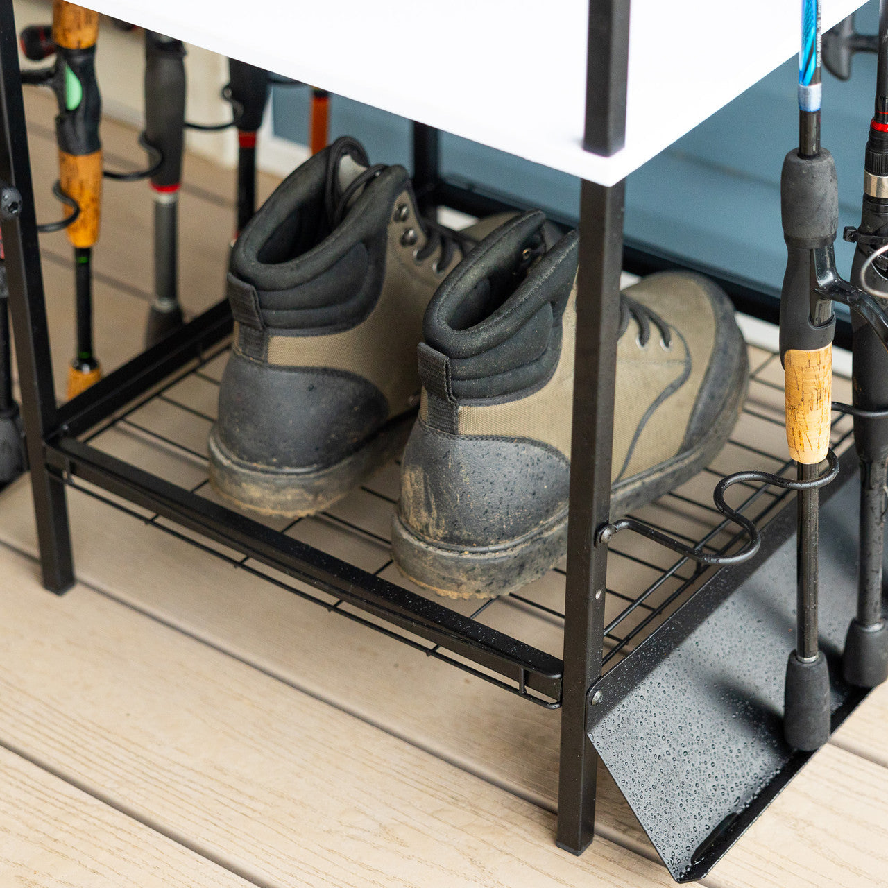 - 3 Shelves for tackle boxes, boots, bait buckets, and more