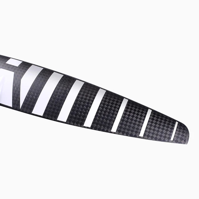 The APF front foil is all about maximizing your flight time. It achieves such remarkable low speed lift and cruising efficiency thanks to a combination of its outline and foil section. The nearly straight leading edge, forward swept trailing edge and wide wingspan boost glide. The APF's foil section itself is high camber and relatively thick for excellent low end lift from very slow speeds, and it optimized specifically for low speeds so you can conserve energy while pumping at a relaxed cadence. Downturned wingtips reduce drag, further improving your potential to go the distance.